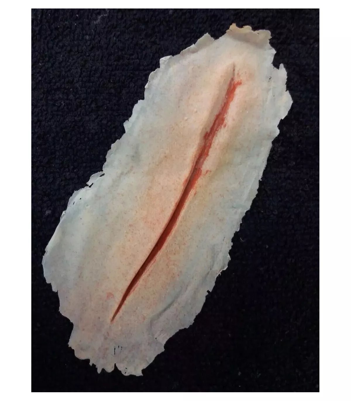 Convierte cualquier maquillaje en una escena de terror con esta prótesis de corte abierto de H.R.P. Impresiona en fiestas, rodajes, pasajes del terror o sesiones fotográficas.