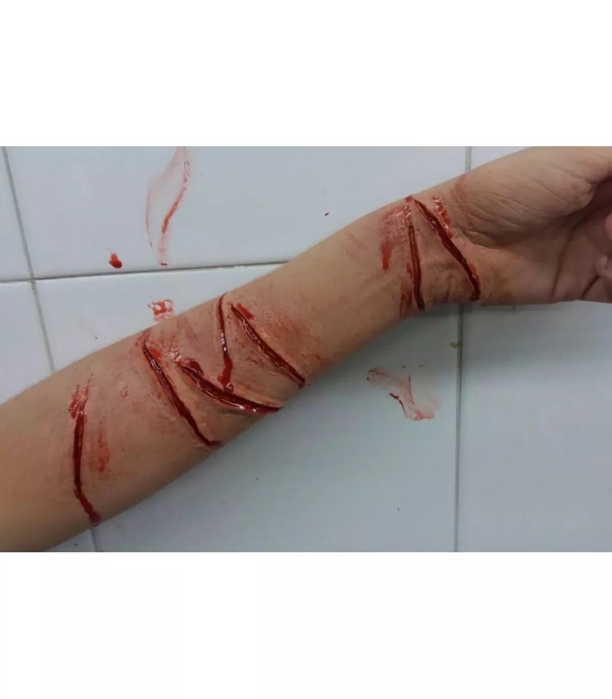 Añade realismo extremo a tu caracterización con esta prótesis de látex con múltiples heridas por cortes de H.R.P. Diseñada para maquillaje de Halloween, cine, teatro o efectos especiales, esta pieza reproduce diferentes tipos de cortes abiertos en la piel con gran detalle.