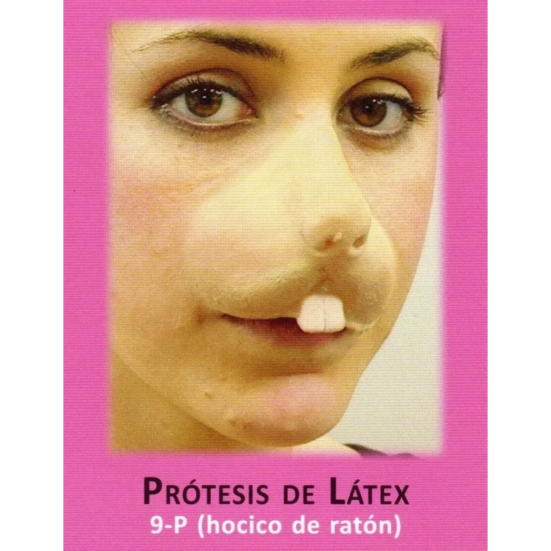 Prótesis de látex con color. Hocico con forma de ratón. Para colocarlo es necesario aplicar mástix o prosaide.