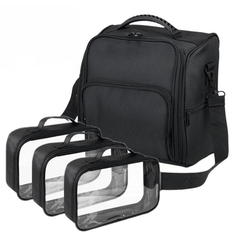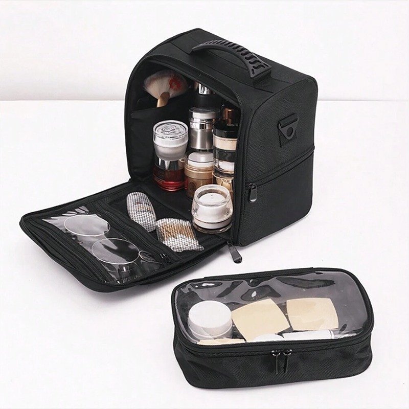 Su interior incorpora neceseres transparentes que funcionan como separadores, permitiendo mantener todos tus productos visibles y organizados en todo momento. Perfecto para sesiones rápidas, trabajos móviles o para mantener tu kit esencial siempre a la vista.
