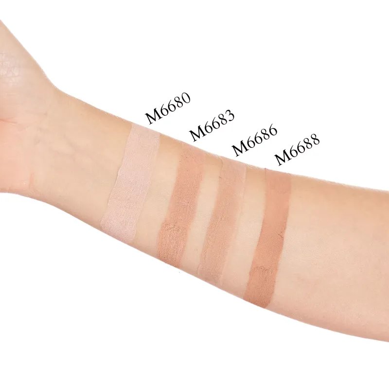 Nuestra base en mousse está disponible en 4 tonos versátiles: 680, 683, 686 y 688. Estos tonos se adaptan perfectamente a una variedad de tonos de piel, garantizando un acabado natural y uniforme.