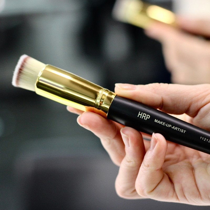 La brocha compacta redonda de corte recto de HRP MAKE UP ARTIST es una herramienta imprescindible para conseguir un acabado uniforme, profesional y sin marcas en la aplicación de bases de maquillaje.